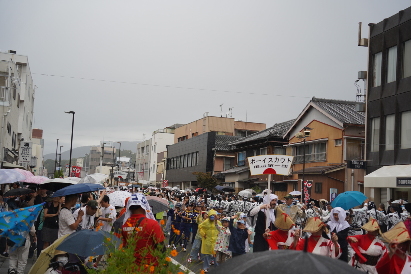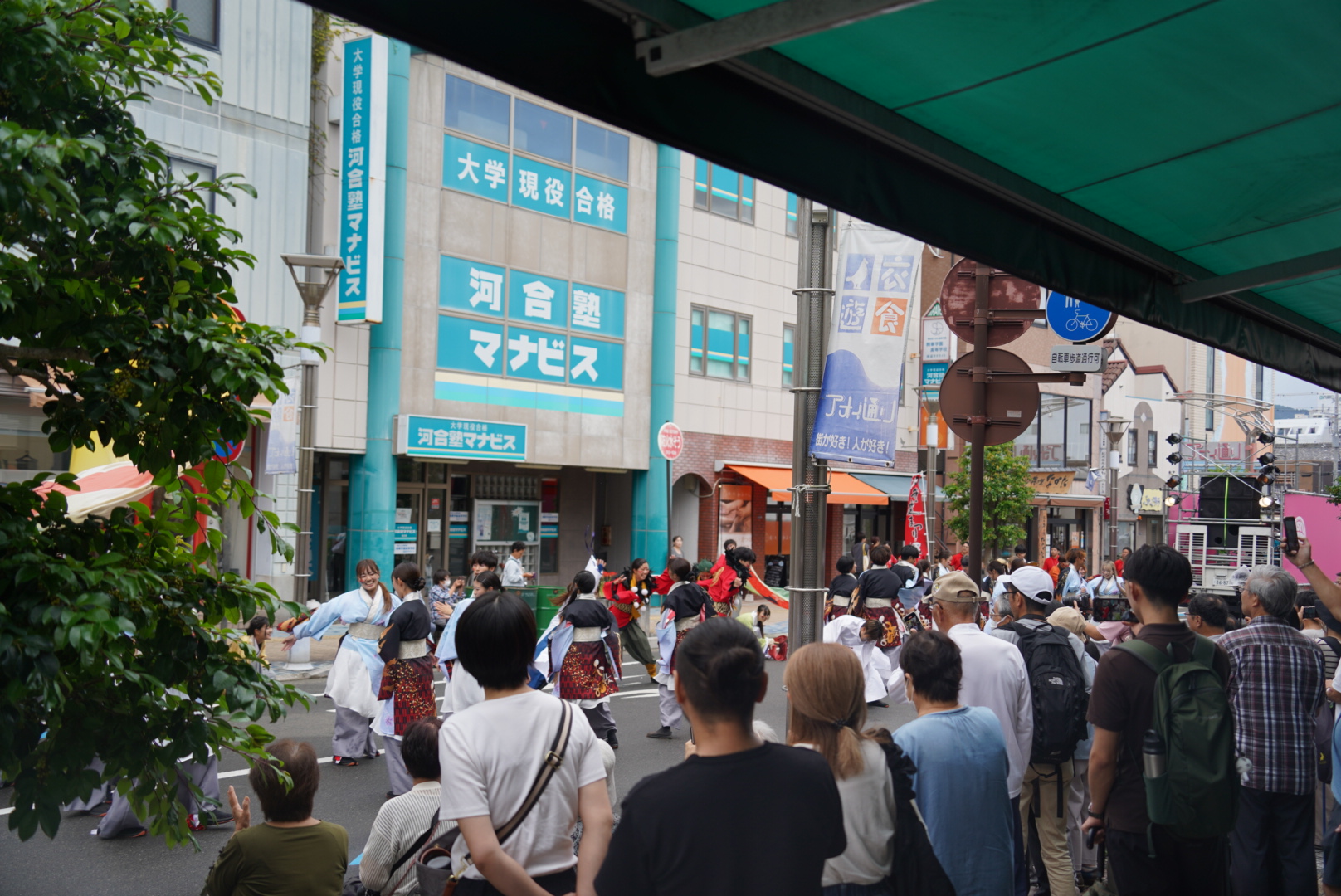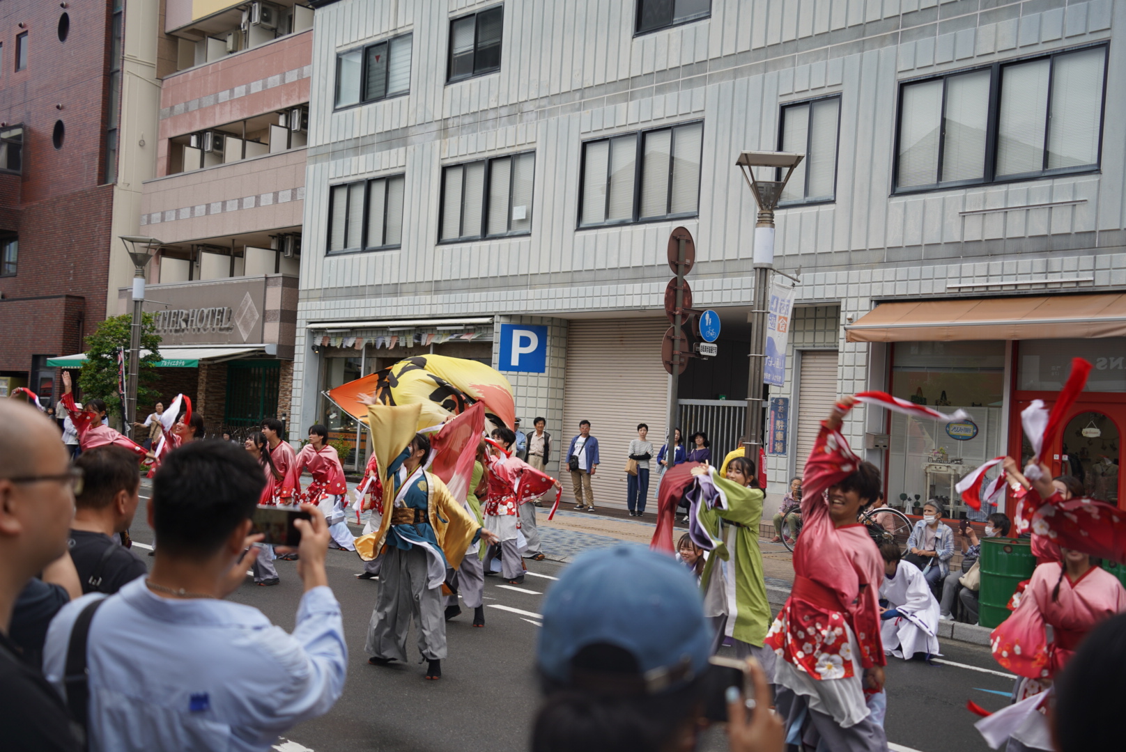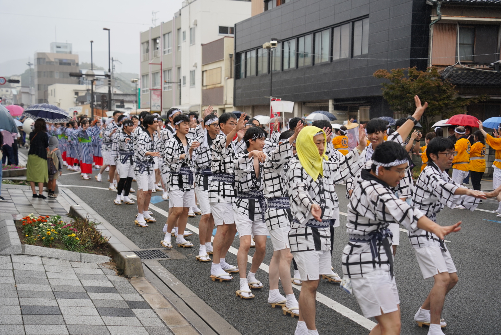 弁慶をイメージした力強い振り付けで踊る「弁慶ゲタ踊り」。 今年は18団体が参加し、総勢約660人が大通りを練り歩く光景は圧巻です。 踊り手たちは雨にも負けず、「アリャ、ドッコイショ!ソリャ、ウントコショ!」と大きな声を響かせていました。