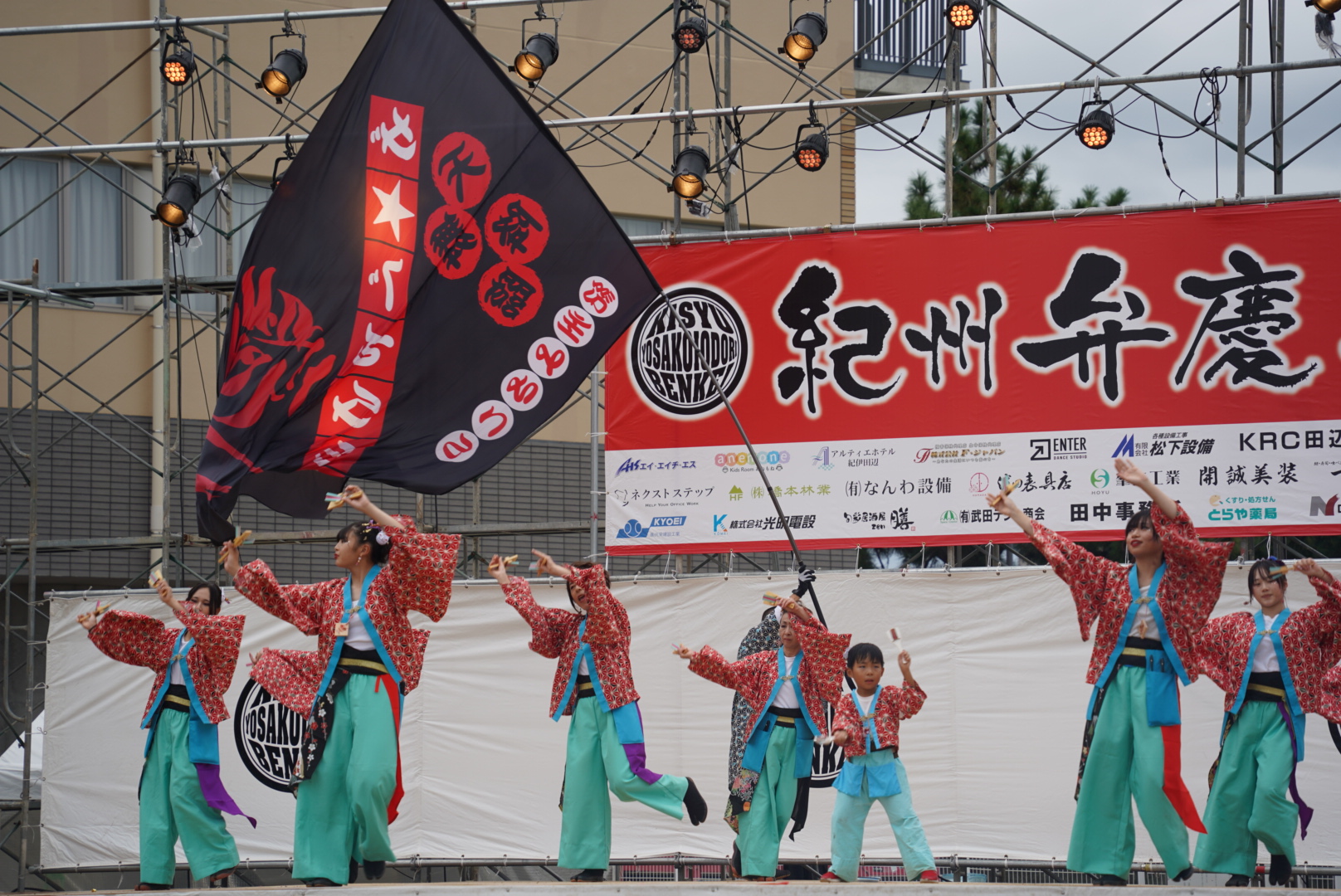 今や県内外から多くのチームが参加する「紀州弁慶よさこい踊り」。 色とりどりの衣装に身を包んだ踊り手たちが個性あふれるパフォーマンスを披露し、観客から大きな歓声と拍手が送られました。