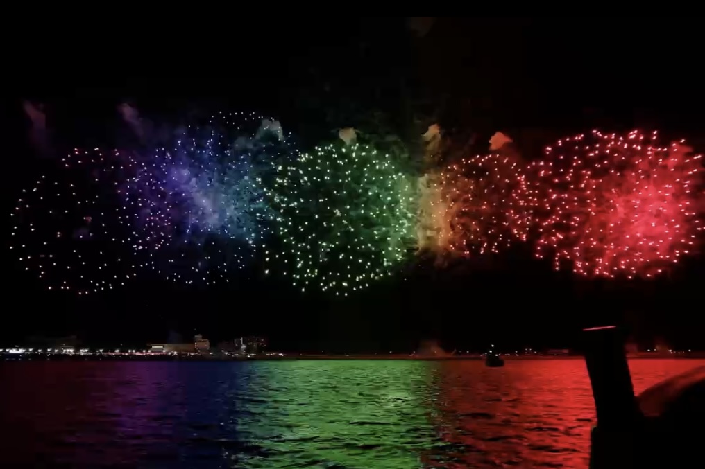 海面に映る花火の光も美しく、陸とは異なる幻想的な景色が広がっていました。