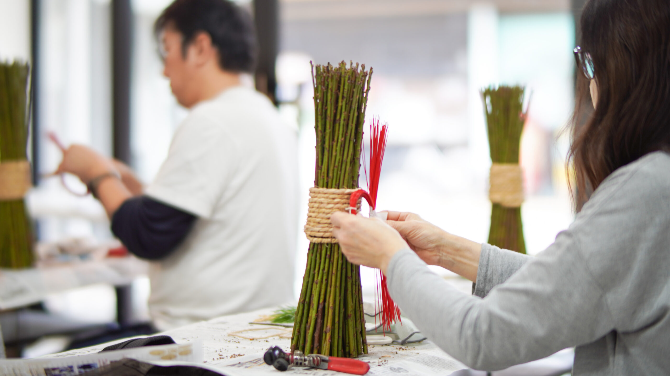 SHIOGORIというキーワードを普及させながら、海だけではなく、街なかへの波及、人材交流、情報発信を目的としたSHIOGORI STORY事業では、6月に株式会社タカショーデジテック代表取締役社長である古澤良祐さまをゲストにお招きし、交流イベント「シオゴリバ」を実施。12月には、駅前商店街にあるギャラリー駅前を会場に、梅の里ならではのお正月飾り「門梅」をつくるワークショップを開催いたしました。